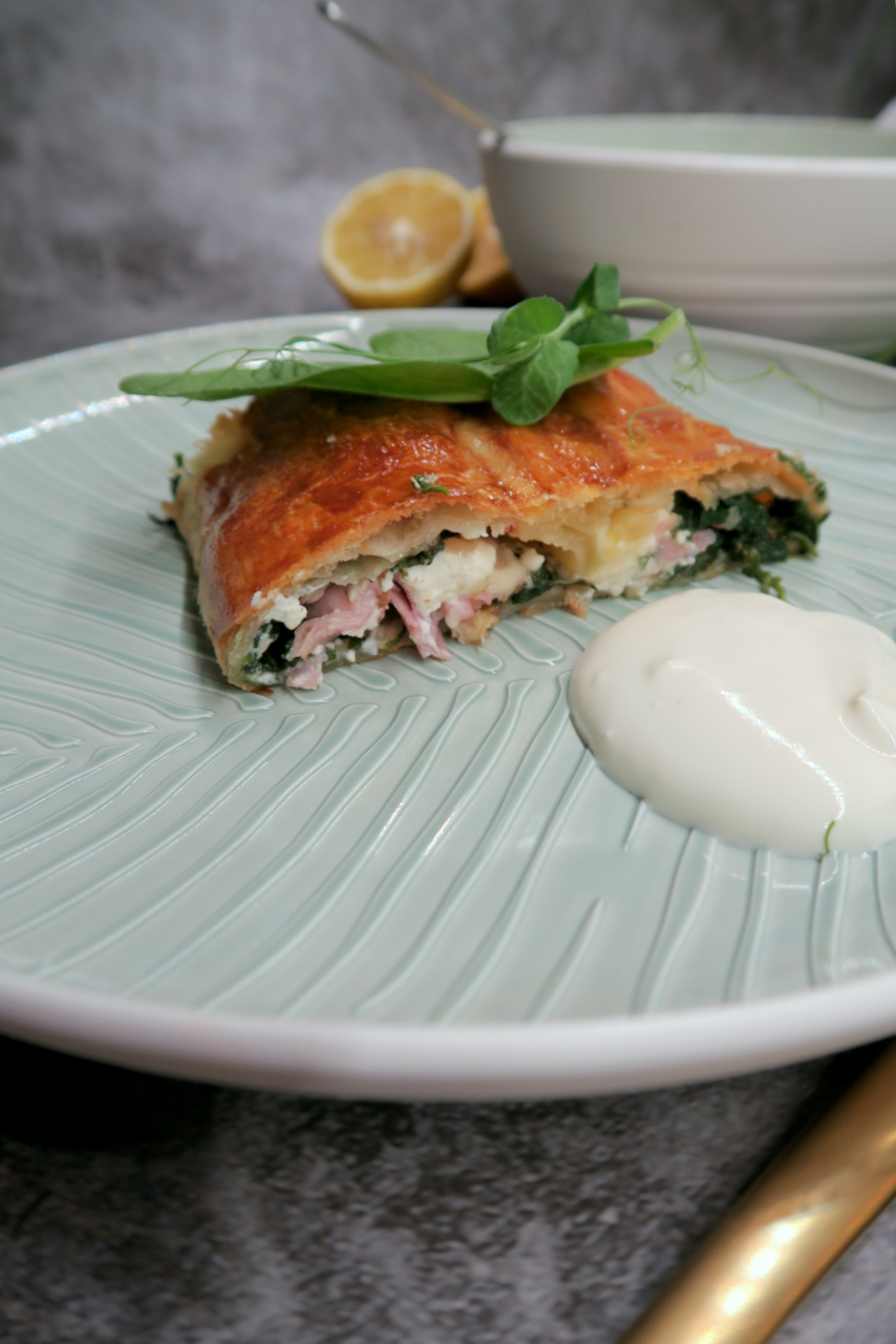 Den Spinatstrudel nur noch anschneiden und genießen.